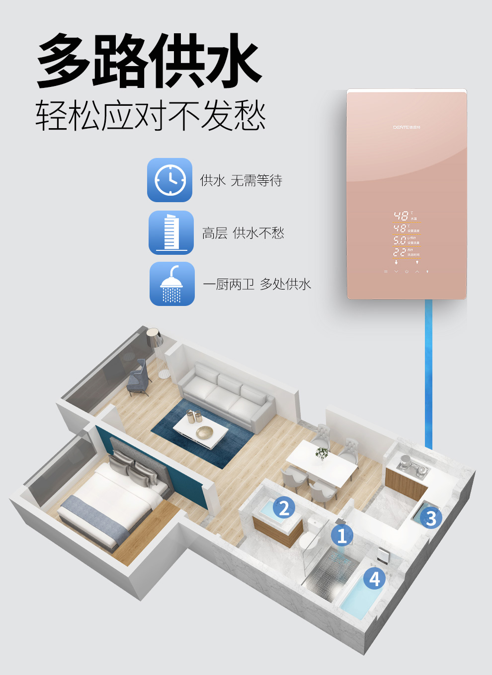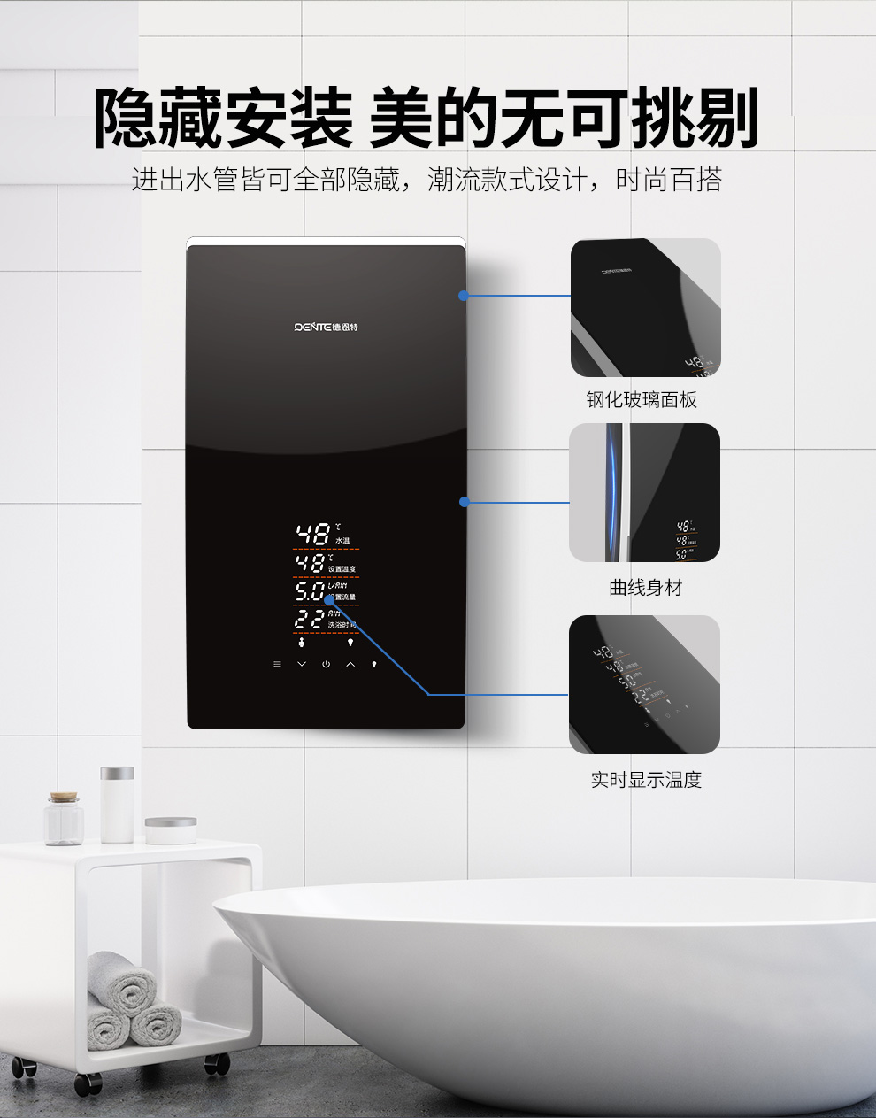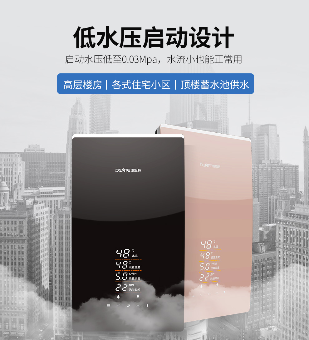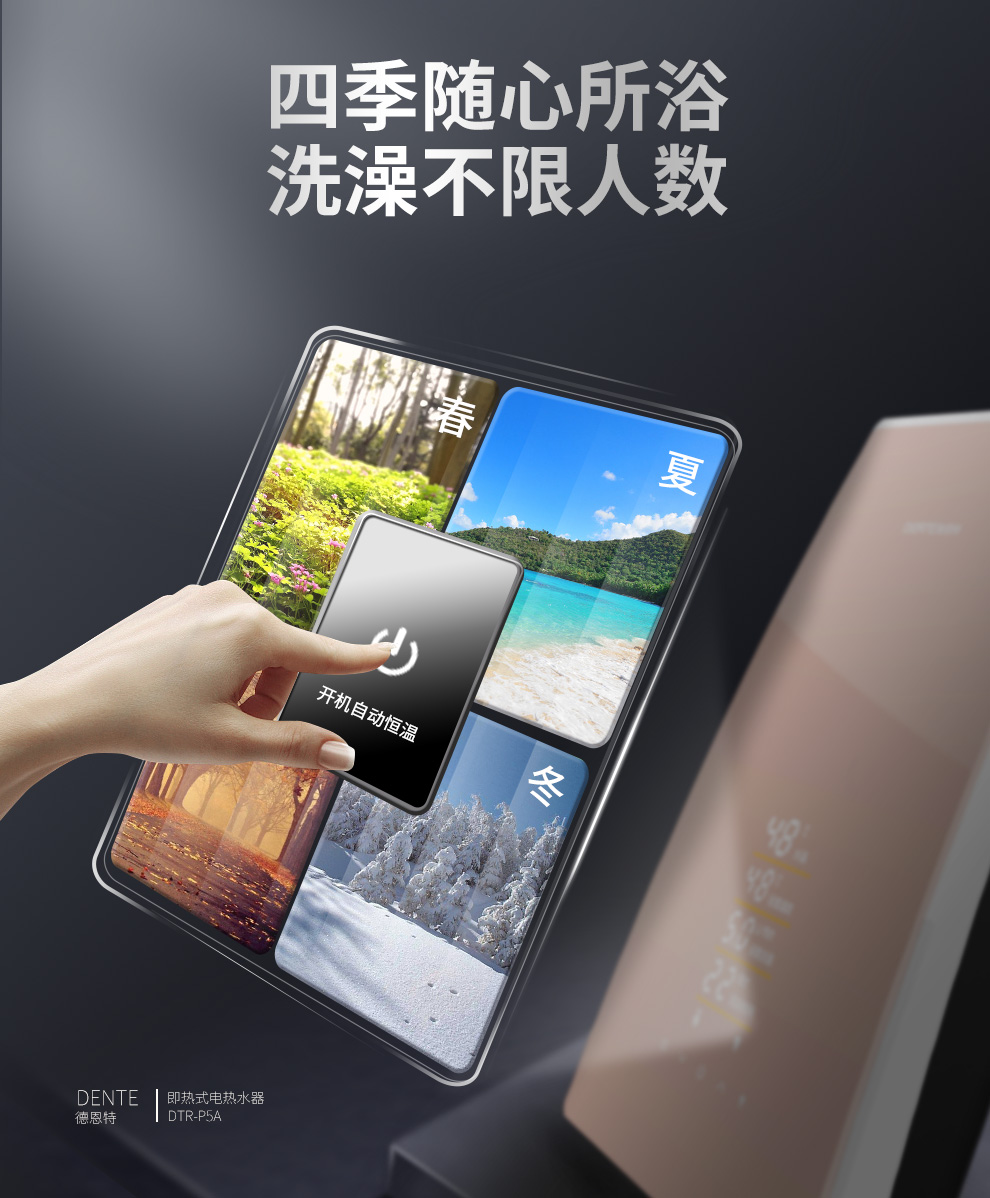 產(chǎn)品中心 > 即熱電熱水器系列> 德恩特DTR-P5A全隱藏安裝速熱大水量 玫瑰金/典雅黑V12系列